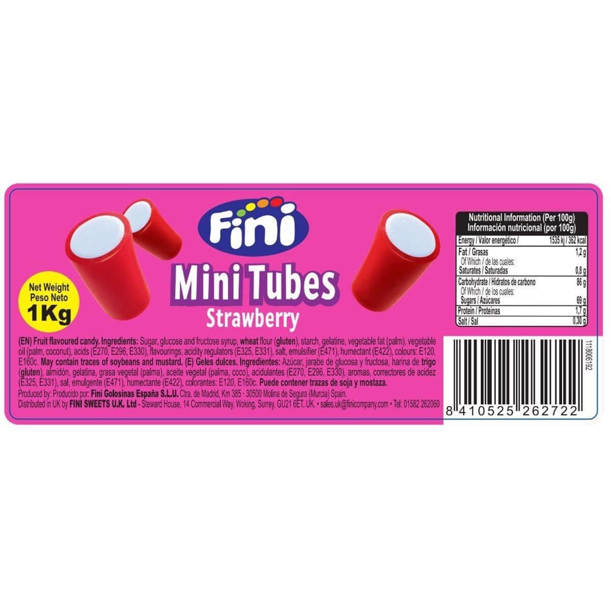 Fini Strawberry Mini Tubes Candy Gummy Jellie Sweets 1kg Box